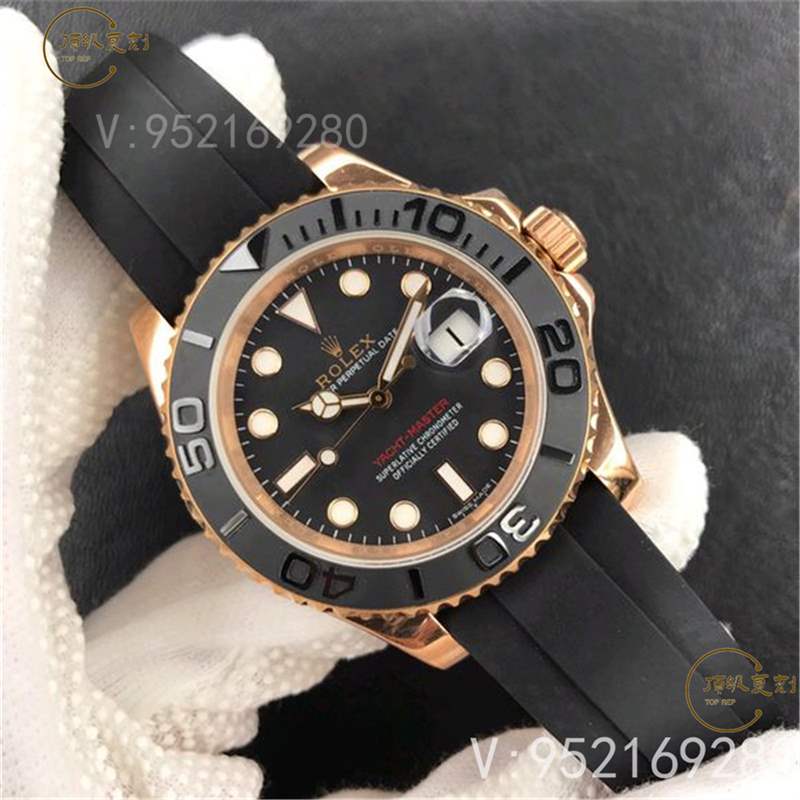 AR廠超神之作ROLEX YACHT-MASTER"116655"(金游艇)系列,表殼表扣為頂級進口904鋼,搭載2824機芯。AR版的膠帶做出了與正品一致的內含鋼片的技術與質感,能與正品通用互換!并搭配正品代購包裝配套。 最高品質"金游艇"副本【AR出品】